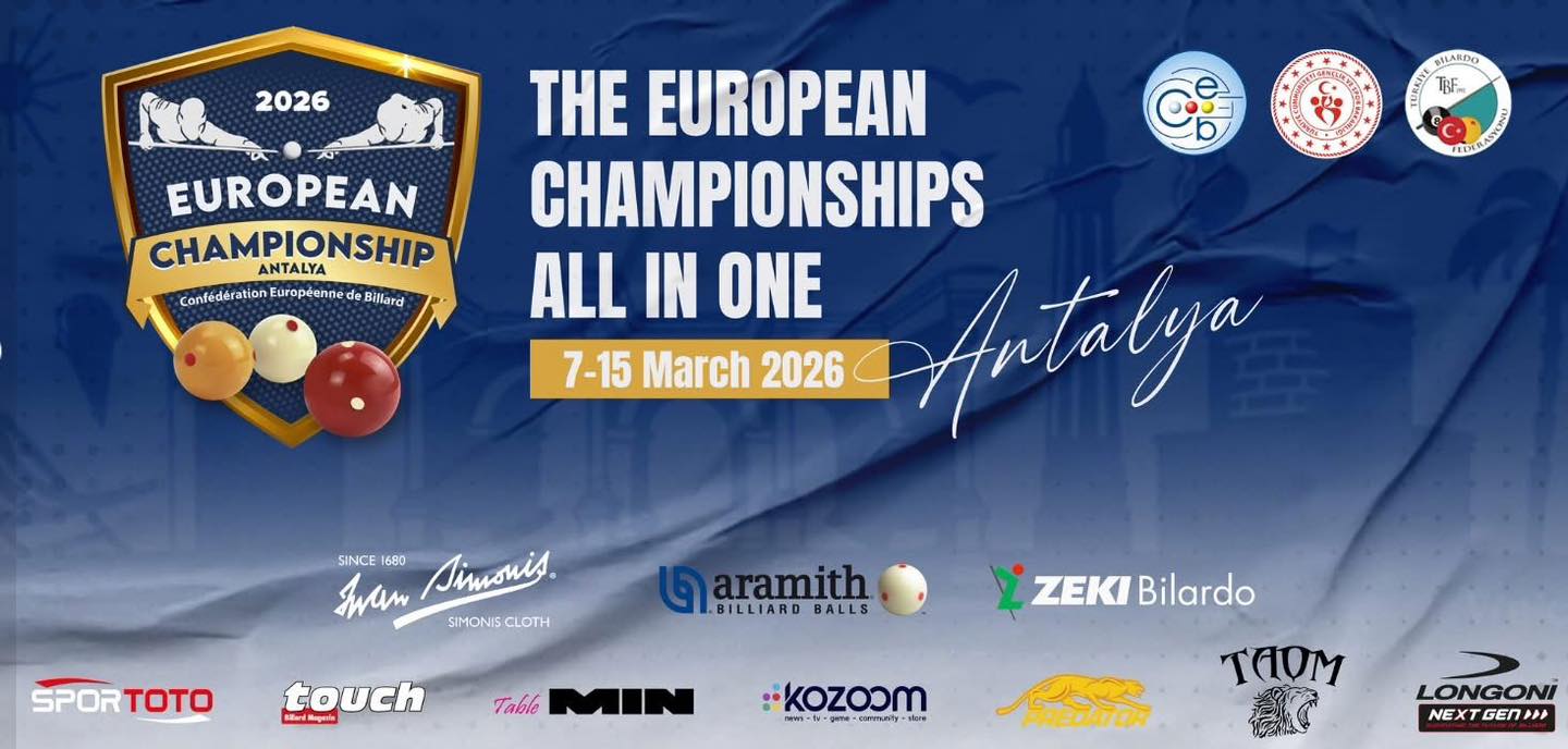 The All-in-One format highlights the diversity of European carom billiards and 5-Pins, underlining the CEB’s strong commitment to elite competition and women’s billiards.With Antalya once again providing outstanding conditions for top-level sport, the continental championships promise world-class performances, thrilling matches, and a truly international atmosphere.Live coverage will be available via Kozoom. Detailed schedules, results and further event information can be found on the CEB website and social media channels.