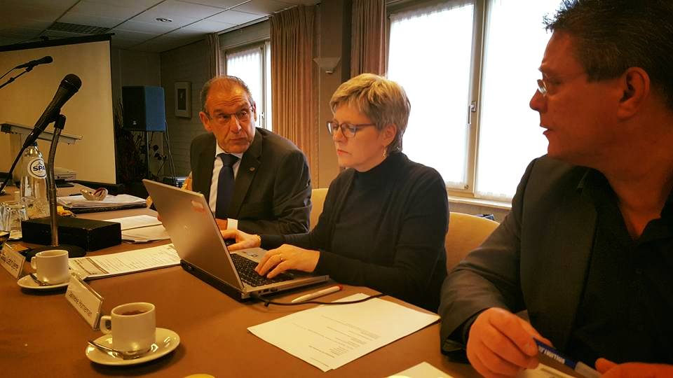 Janneke op een ALV van KVC (2019, met links Jaap Labrujere en rechts Alex ter Weele). Foto: KNBB