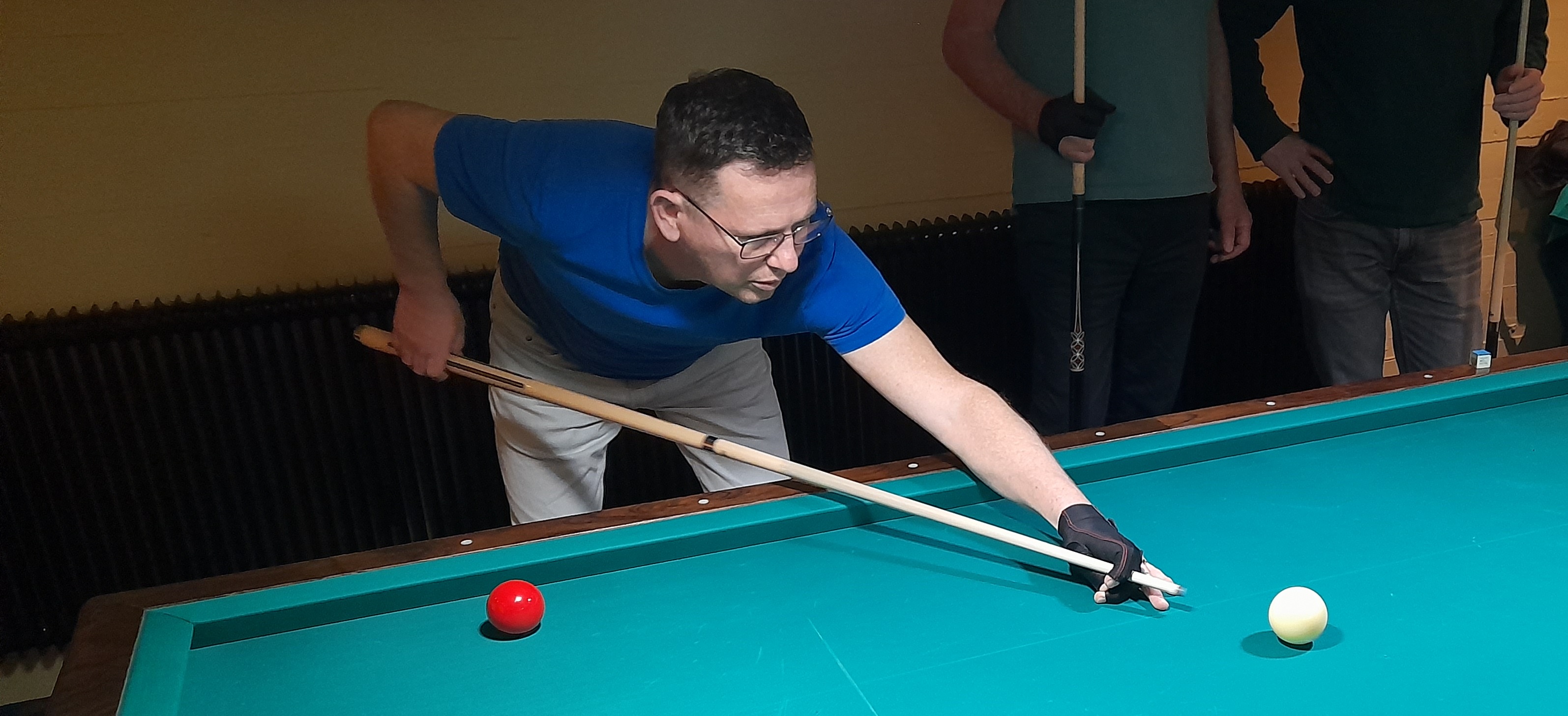 En dan de cursus Biljartinstructeur-B. Een mooi cursusboek, maar vooral een prettige leermeester. Natuurlijk vanuit de theorie, (met veel kennis en handvatten) maar ook veel praktijkoefeningen met uitleg, begeleiding en coaching van Piet Verschure.