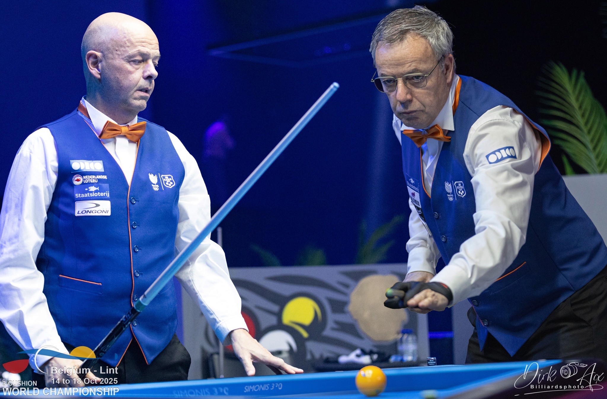 Op het Wereldkampioenschap driebanden in Lint, België, gaat het hoofdtoernooi vandaag, donderdag, van start met 32 spelers in de knock-out. Dick Jaspers speelt tegen Jean Paul de Bruijn in een echte TeamNL clash, deze wedstrijd gaat om een plaats bij de beste zestien. De partij is om 14.30 uur donderdagmiddag, te bekijken op SOOP tv. Het volledige programma vindt u hier.