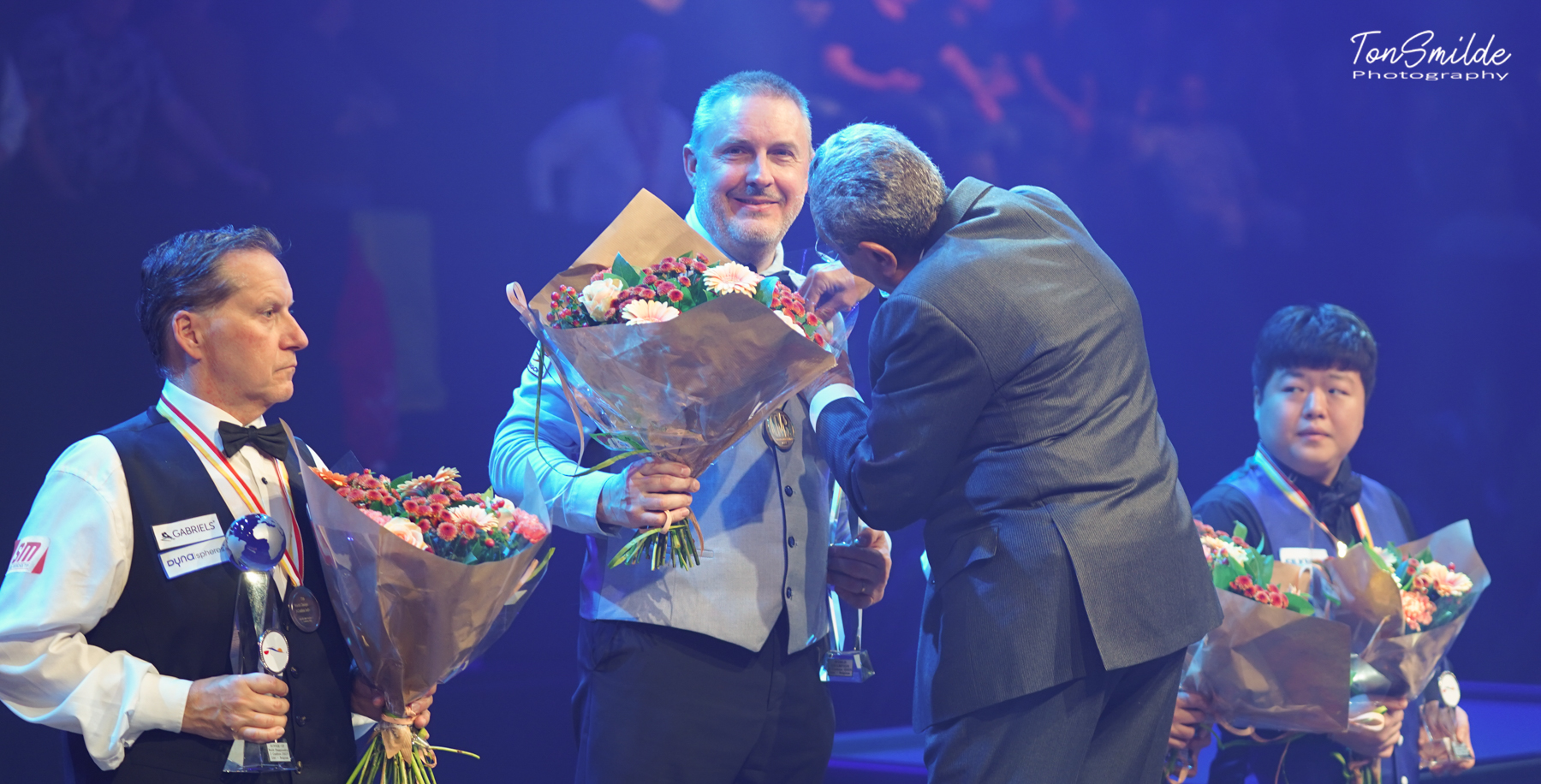 De zaterdagmiddag tussen de wedstrijden door stond onder meer in het teken van een indrukwekkend eerbetoon voor Raymond Ceulemans, de Belgische multi-winnaar in de historie van het biljarten en onder meer gekroond tot 21 keer wereldkampioen driebanden, een record dat vrijwel zeker nooit meer wordt benaderd.