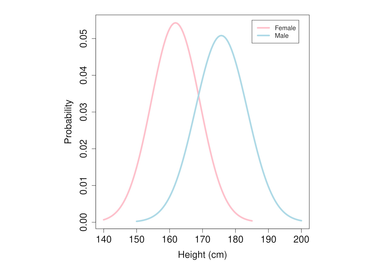 In fact, statistically speaking such a low probability makes the observed difference in sample averages significant enough to reject the basic assumption. In other words, the observed difference cannot be considered a random fluctuation, and suggests the alternative assumption that the two samples actually came from different distributions. Indeed, there is a real and statistically significant difference in the height distributions of females and males, with females being on average about 14cm shorter than males.