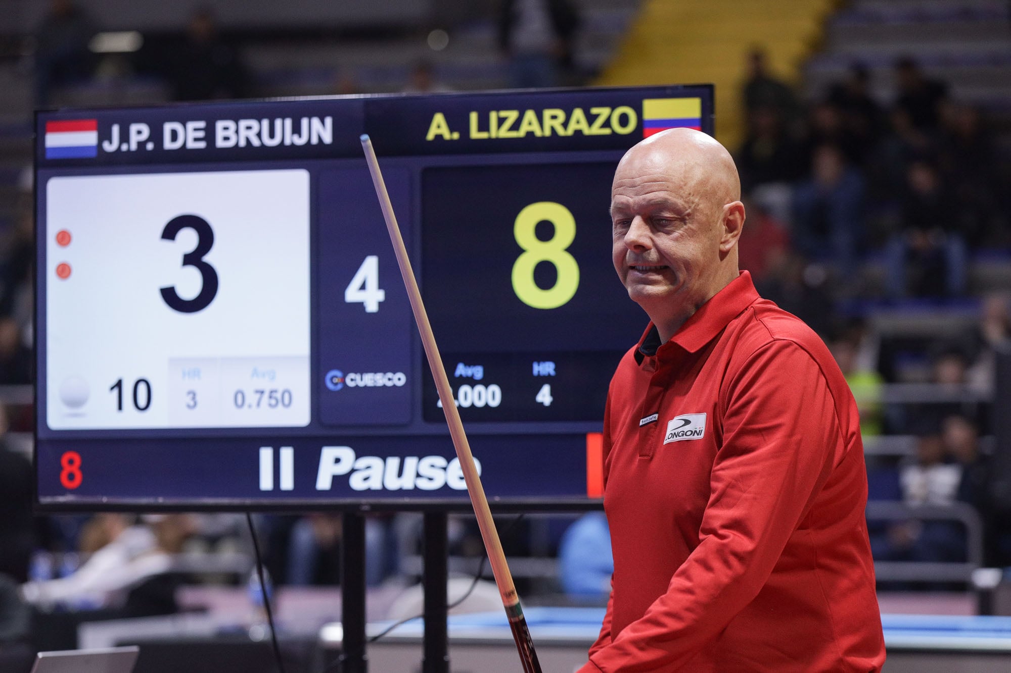 Wat een mooie verrassing van Raymon Groot, de Nederlander uit New York, die een groep met drie tweepunters met afstand aanvoert op moyenne. Hij wint van Ahmet Alp en verliest van Ruben Legazpi met 40-34 in 25. De Spanjaard verspeelt zijn kansen door verlies tegen Alp met 40-32 in 39.