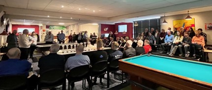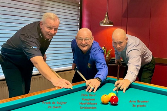 Wat een geweldig en sportief Nederlands Kampioenschap Hoofdklasse Driebanden met een terechte winnaar Jildo Keur. Hij heeft gestreden tot het bittere eind om Kampioen van Nederland te worden, aldus de voorzitter van Wieringermeer’85 Paul Wansink. Het was een feest om dit te mogen organiseren, maar onze dank gaat uit naar de spelers die mede gezorgd hebben voor een geweldige sfeer, de arbiters van District NWN die de partijen in goede banen hebben geleid. Een woord van dank naar de wedstrijdleider Winfried Hoogenboom die er voor zorgde dat alles super verliep en de schrijvers die alle 7 rondes perfect liet verlopen en alle leden van Wieringermeer ’85 die voor een uitstekende catering hadden gezorgd. Uiteraard een woord van dank naar alle enthousiaste supporters, die in grote getale, uit heel Nederland 3 dagen lang hun speler morele steun gaven. Vanaf de tijdelijke opgebouwde tribune hadden ze een mooi overzicht over alle biljarttafels. Afgevaardigde van de KNBB, Bennie Beek overhandigde de spelers de welverdiende medailles en Winfried de bijbehorende wedstrijduitslagen. Nadat de winnende spelers het podium hadden beklommen werd door de plaatselijke fanfare het Wilhelmus gespeeld. Niets meer aan de orde sloot Benny Beek het NK af.