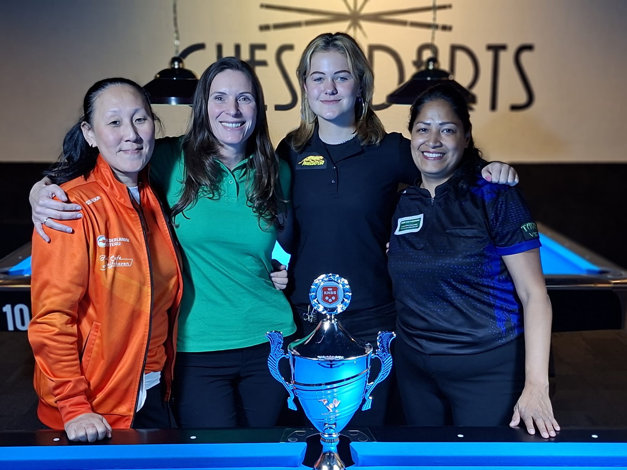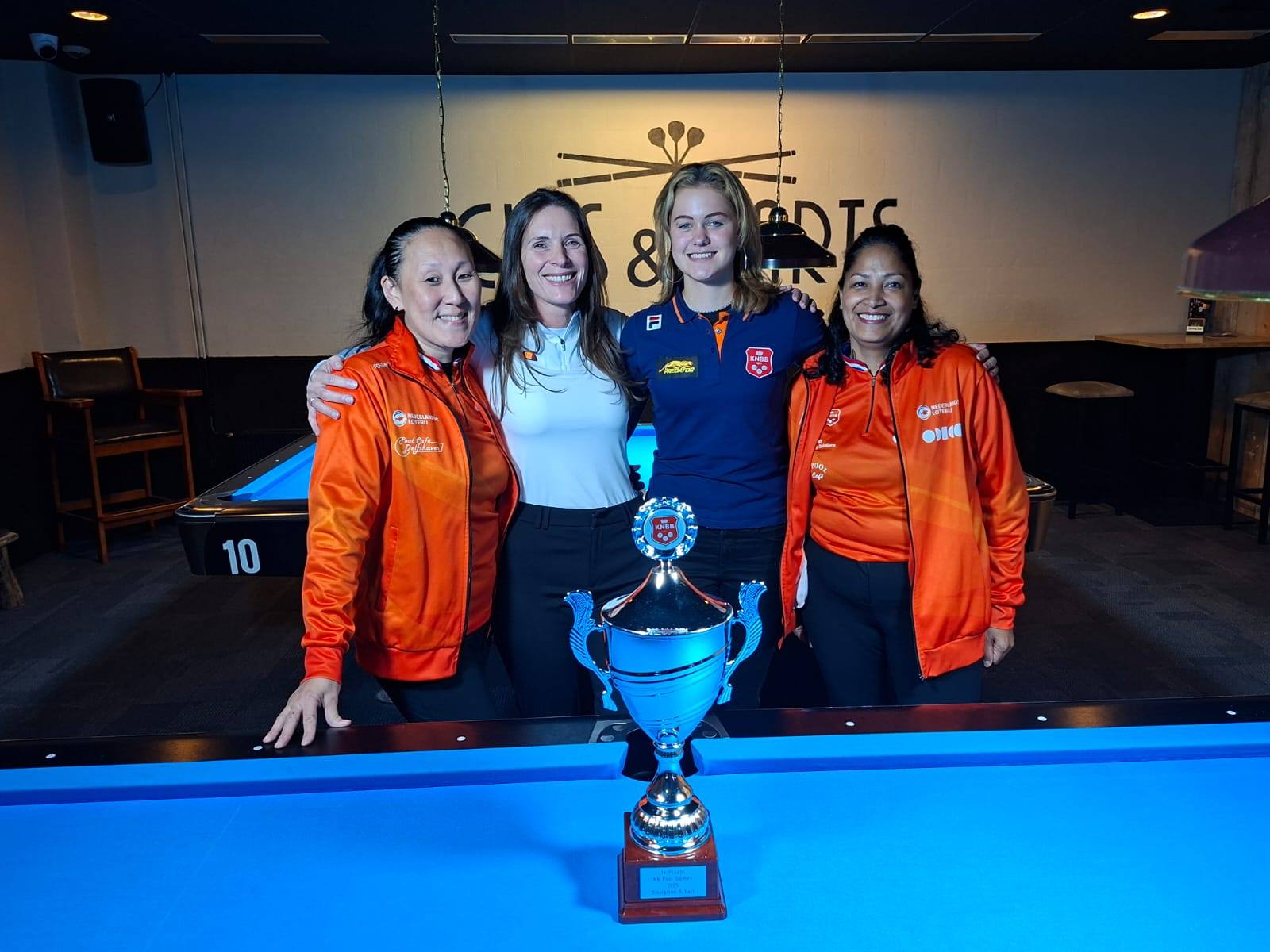 CUES & DARTS in Tilburg was gastheer voor de eerste twee NK’s Pool Dames van het seizoen. Het podium in beide events (straightpool en 8-ball) bestond uit dezelfde vier dames: Jolien Schuurman, Jum Zwijnenburg, Caroline van Steenbergen en Mirjam Alfons. De eerste twee, Jolien & Jum, haalden beide eenmaal goud.