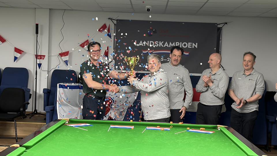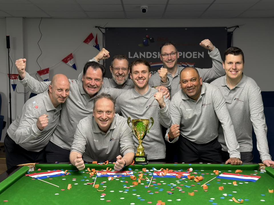 Een week na het behalen van zijn eerste NK-titel heeft Hugo van Houten zich zaterdag 18 april ook doen gelden in de KNBB Eredivisie Snooker '25-'26. Hij verloor weliswaar met zijn team Pubquiz Brabant bij landskampioen PlusConsultants DSA Rijen, maar speelde drie bijzondere partijen: een herhaling van de NK-finale, een clash met een vijfvoudig NK-winnaar en confrontatie met een Belgische... teamgenoot.