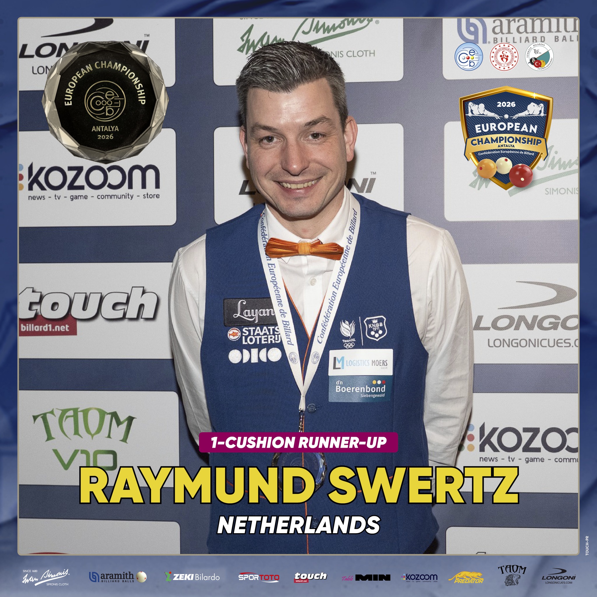 - Klassiek (Bandstoten, Kader 71/2, Kader 47/2): Raymund Swertz, Gert-Jan Veldhuizen, Micha van Bochem, Michel van Silfhout, Jordy Kanters, Matthijs Bakker