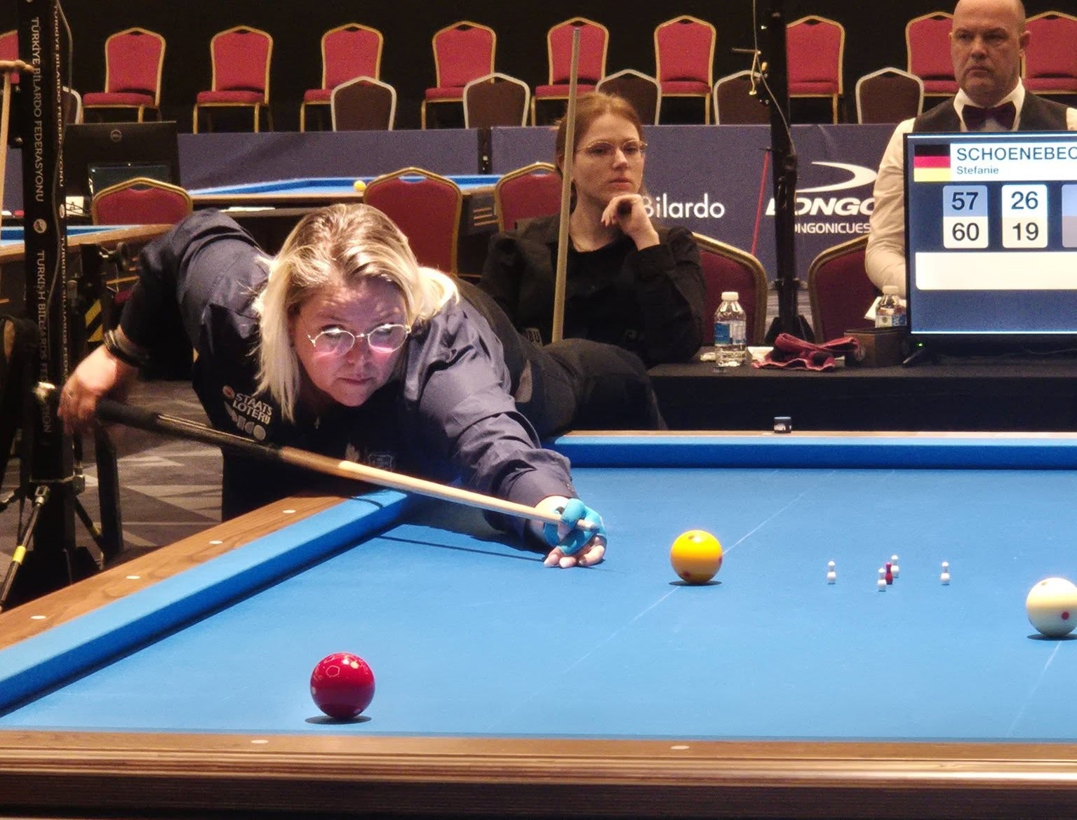 Bij de dames werd Chantal Arntz ingedeeld in een poule met Charlotte Koefoed(DK) de regerend Europees kampioene, Marianne Mortensen(DK) verliezend WK finalist, en Stefanie Schoenebeck(DE). Dit was met recht de poule des doods. Met een knappe overwinning tegen Schoenebeck en het matige spel van Koefoed de 1e 2 wedstrijden werd er stiekem gehoopt op een stunt. Maar daar moest alles voor meezitten en dat was zeker niet het geval voor Chantal. Chantal eindigde uiteindelijk als 6e.