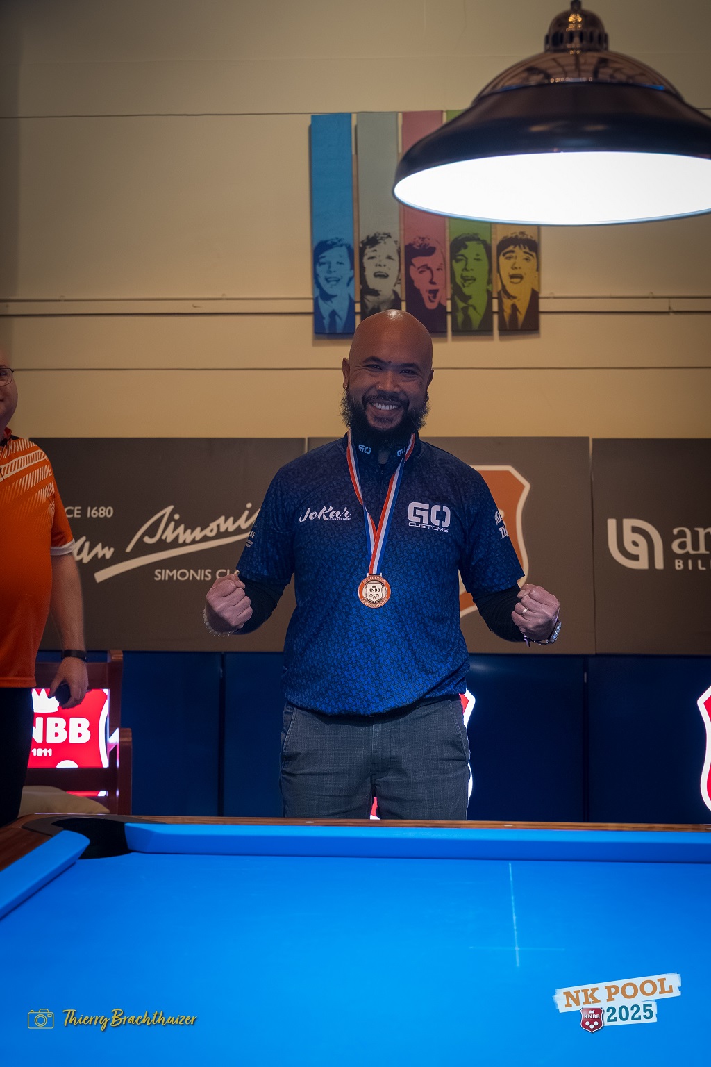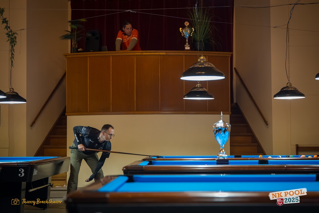 Op de stand 60-50 was het Tim die de rust bewaarde aan de tafel en met een mooie break van 40 uitschoot en wint met 100-50.