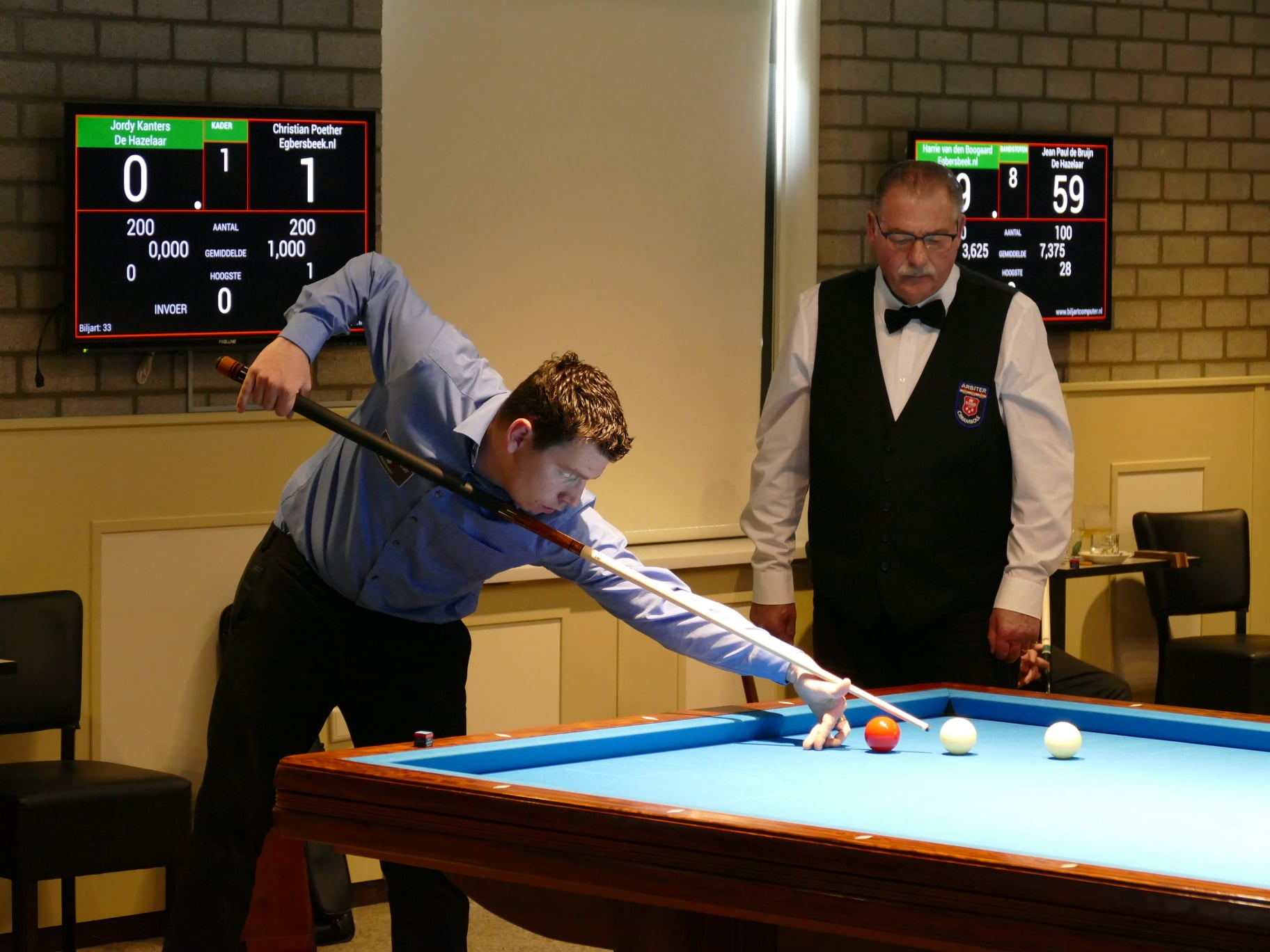Rooijendijk verloor tevens van Jordy Kanters van BV De Hazelaar, 57/1 280-6-46,66. Kanters van BV de Hazelaar sloot de 1e helft af met 3 beurten, tegen Lyon Megens van de Vriendenkring, 280-3-93,33 met een ongelofelijke serie van 269!